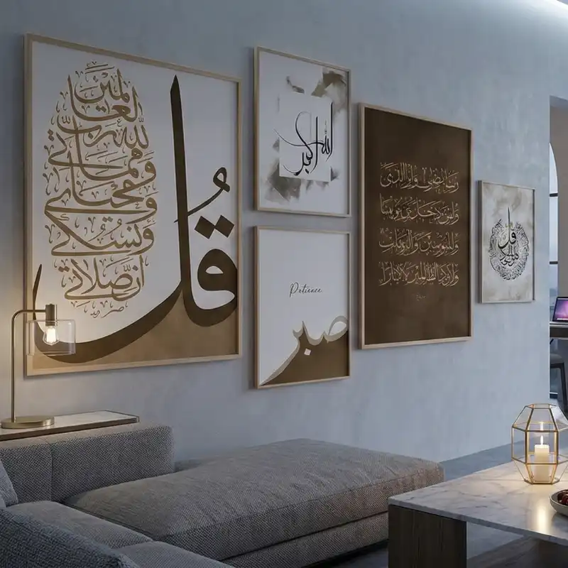 Create a statement wall with this elegant Islamic calligraphy gallery wall set designed to bring warmth, spirituality, and artistic sophistication into your home.
